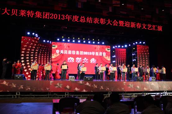 為了答謝集團(tuán)全體員工一年來的辛勤工作,表彰優(yōu)秀,進(jìn)一步增強(qiáng)員工的榮譽感和凝聚力,規(guī)劃2014年集團(tuán)發(fā)展方向,鼓舞員工士氣,為2014年集團(tuán)跨越發(fā)展奏響序曲。2013年12月30日,集團(tuán)舉辦了盛大的主題為“改革奮進(jìn) 超越 夢想”的2013年度總結(jié)表彰會暨迎新春文藝匯演,會上表彰了120名集團(tuán)優(yōu)秀員工和5個年度最佳團(tuán)體,集團(tuán)副總裁、貝萊特營銷公司總經(jīng)理溫仁東和集團(tuán)副總裁、綜合發(fā)展事業(yè)部總經(jīng)理吳世軍分別做了工作報告,集團(tuán)總裁吳留明就2014年集團(tuán)發(fā)展規(guī)劃作了重要講話,并舉辦了別開生面的文藝演出。