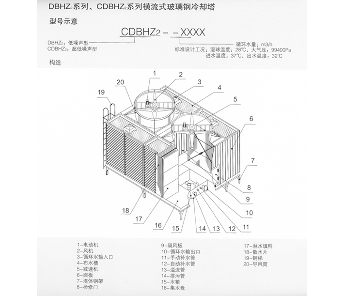 DBHZ2、CDBHZ2系列低噪聲、超低噪聲橫流式冷卻塔