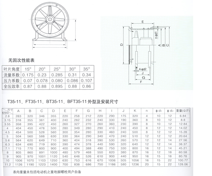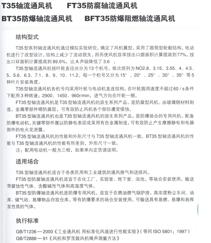T35軸流通風機、FT35防腐軸流通風機、BT35防爆軸流通風機、BFT35防爆陰燃軸流通風機