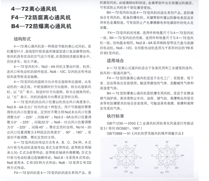 4-72離心通風機、F4-72防腐離心通風機、B4防爆離心通風機
